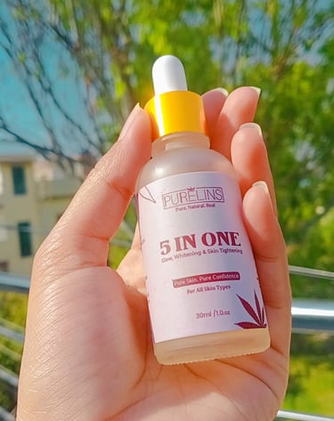 Glow naturally with PureLins 5-in-1 Serum. Packed with Vitamin C, Niacinamide & Hyaluronic Acid for brighter, smoother, and deeply hydrated skin.